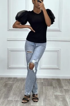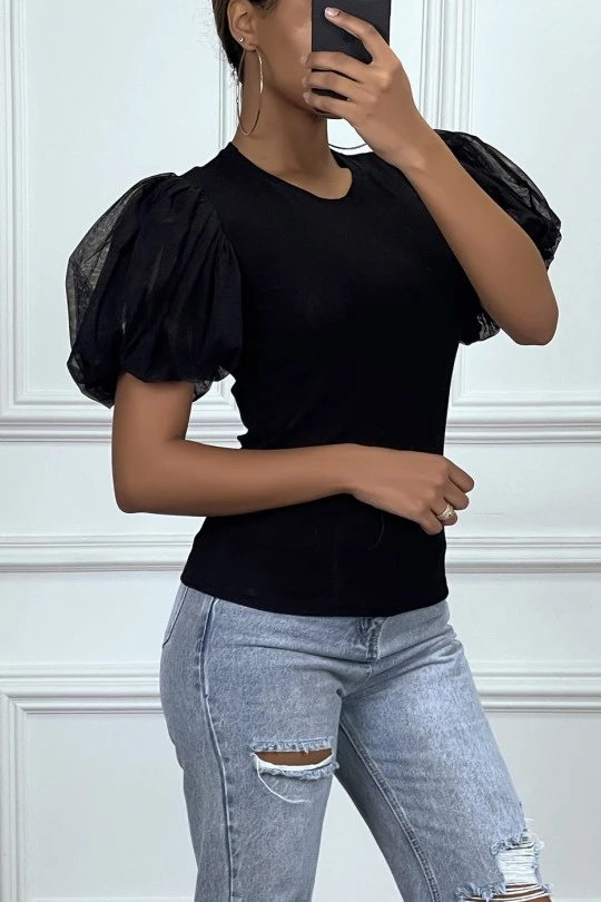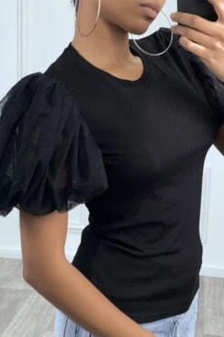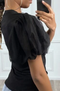 T-shirt Noir Ă  Manches Courtes Bouffantes