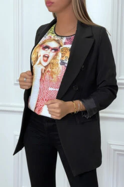 T-shirt Noir Ă  Motif Femme Vichy Et Strass