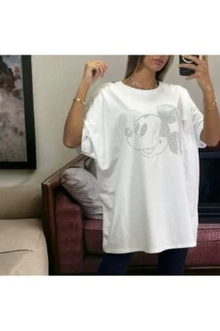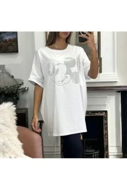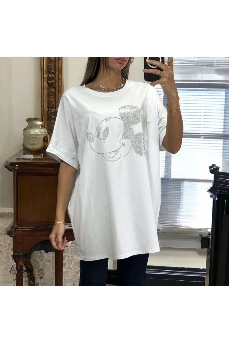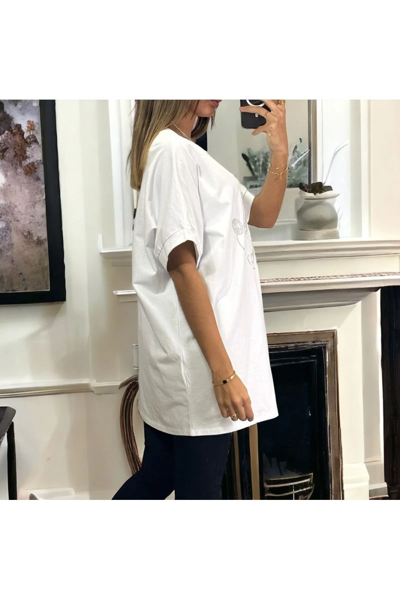 T-shirt over size en coton avec motif en strass
