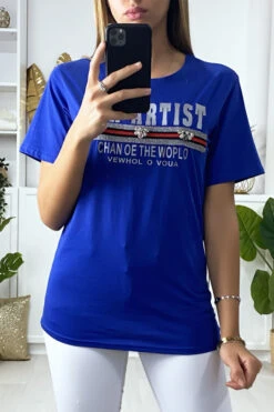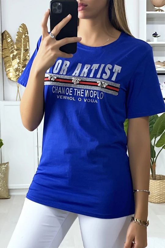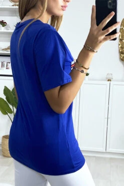 T-shirt royal avec Ă©criture et strass. VĂŞtement femme pas cherÂ
