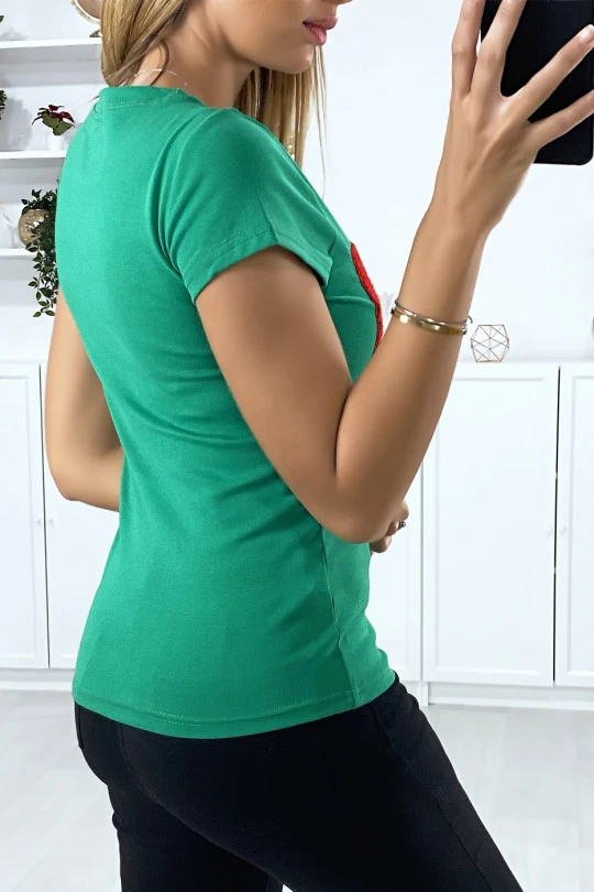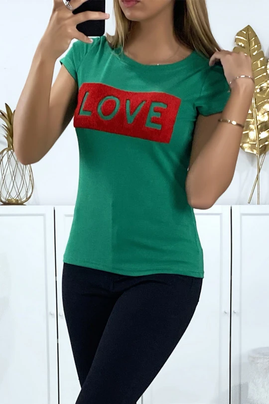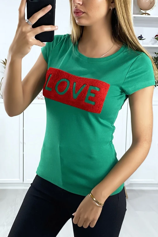 T-shirt vert pour femme avec Ă©criture Love. VĂŞtement mode femme fashionÂ