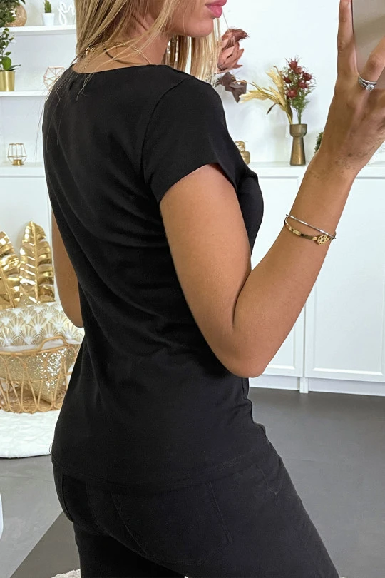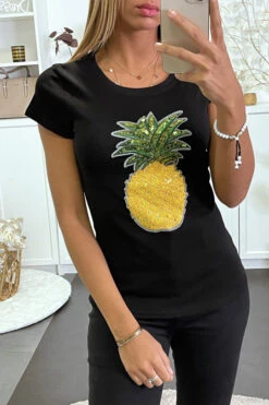 Teeshirt noir Ă motif ananas en sequinsÂ