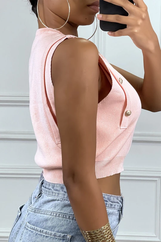Top debardeur court rose turquoise avec boutons dorée