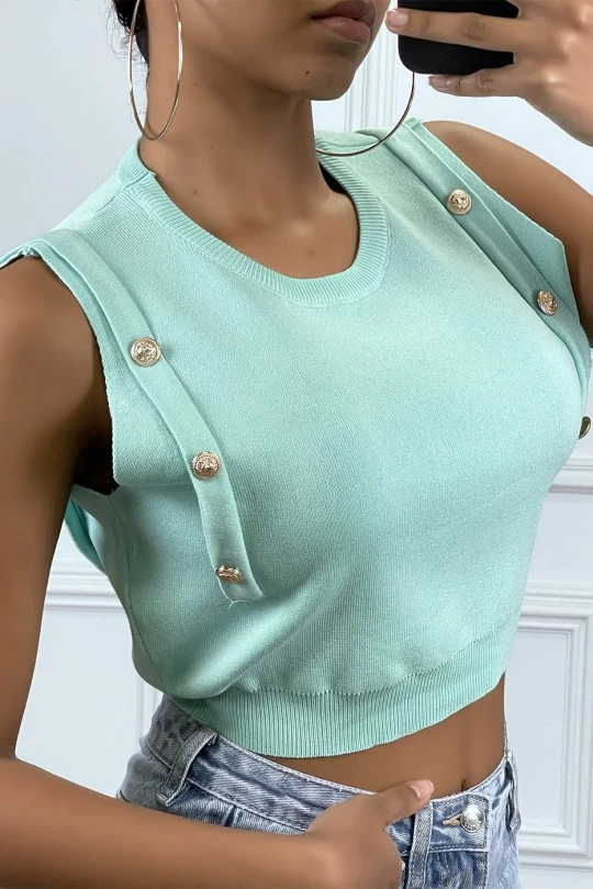 Top debardeur court vert turquoise avec boutons dorée