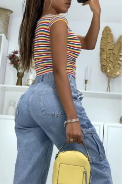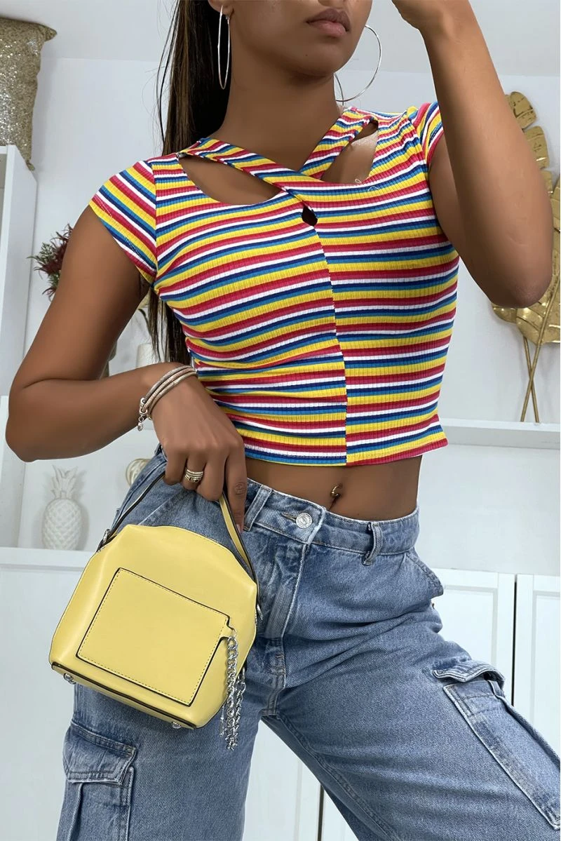 Top Multicolore Jaune Rouge Croisé Au Buste