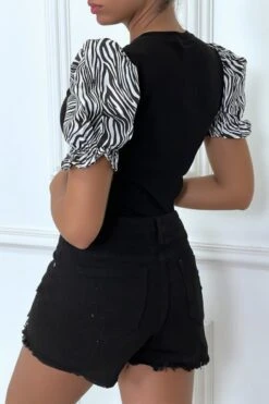 Haut Beige Effet Velours Et Maille Transparente Au Niveau Des épaules Pour Un Effet Col Bateau