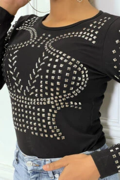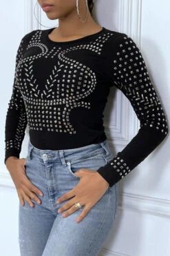 Top noir manches longues Ă clou