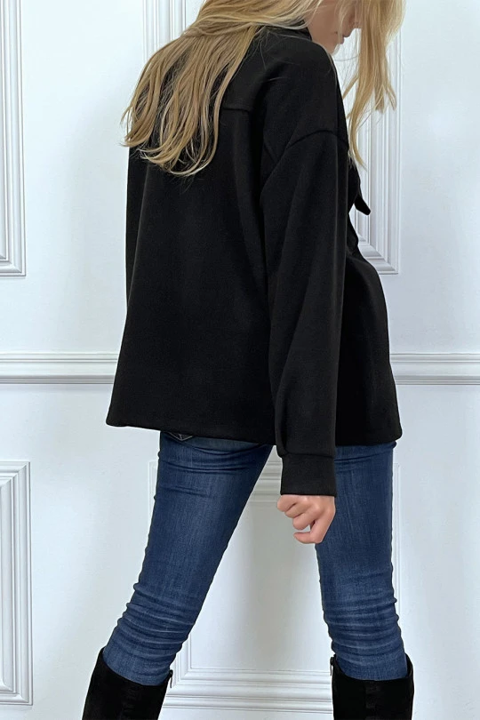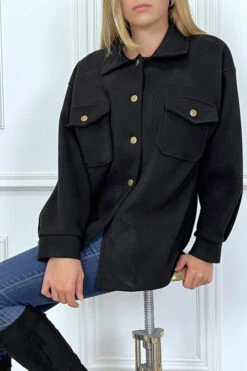 Veste noire bien Ă©pais avec poches et boutons style sur chemise. veste chemise Mode femme pas cherÂ